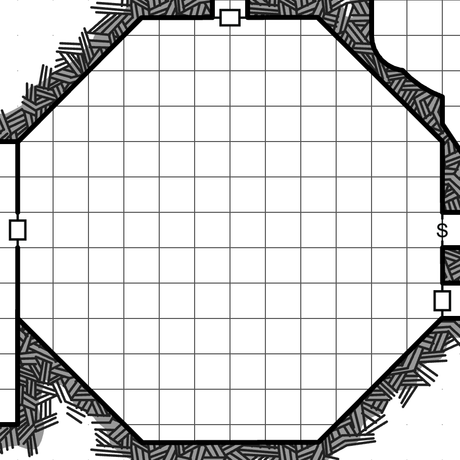Busts of all 23 High Priests from the Temple’s days of operation are arranged around the perimeter of this dank stone room. A single elf warrior (wounded) is slumped against the western wall next to the door.